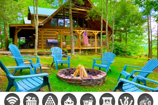 Escape to the great outdoors of the Smoky Mountains at Big Kahuna Lodge, the perfect retreat for your next family vacation or reunion in Wears Valley, Tennessee! This spacious 3-bedroom, 3-bathroom cabin comfortably sleeps up to 9 guests, with ample space for everyone to spread out and relax. You'll feel right at home with the cozy decor and warm ambiance when you step inside. The living area features a comfortable seating arrangement, perfect for gathering around the fireplace or watching your favorite movies on the big flat-screen TV. You can stay connected with the complimentary WiFi. After a day of exploring the beautiful Smoky Mountains, take a relaxing soak in the hot tub, gather around the fire pit or the horseshoe pit, and enjoy some quality time together. With its perfect blend of comfort, convenience, and natural beauty, Big Kahuna is the ideal choice for your next family getaway!