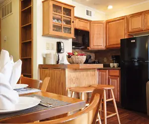 Relax on plush furnishings and watch one of two flat-screen televisions. Whip up a tasty snack in your convenient kitchenette. Pour a glass of wine and take in the fresh Colorado mountain air and inspiring views from your private balcony. Free high-speed WiFi keeps you connected while air conditioning units and cozy wood-burning fireplaces ensure your absolute comfort year-round.